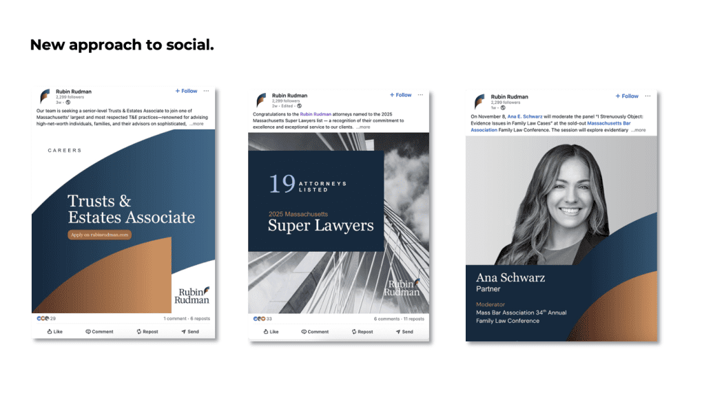 In collaboration with the firm’s leadership and marketing/BD teams, here is what FINN delivered to Rubin Rudman: