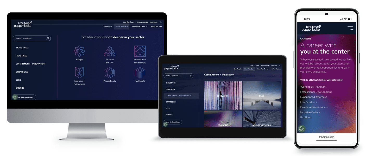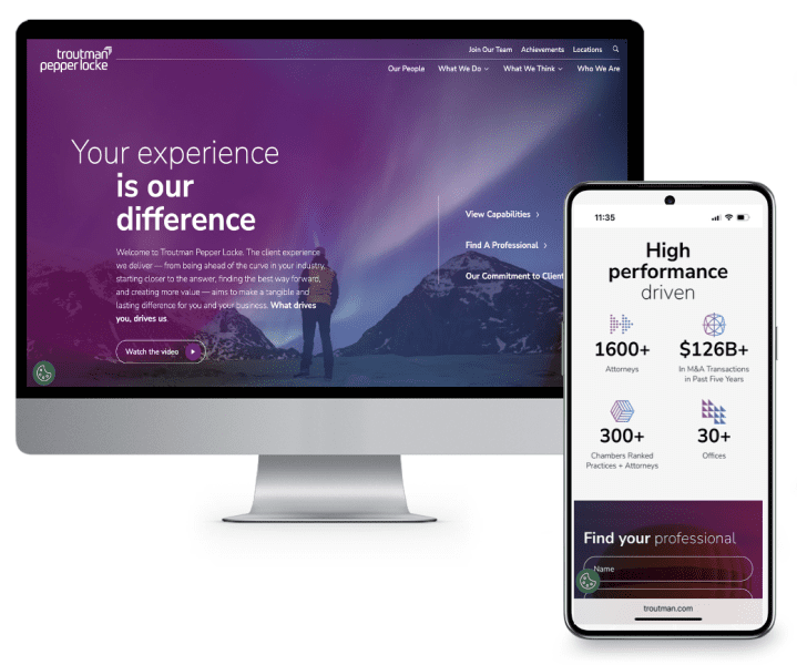 Combine, refresh and elevate the brand and website of the newly merged powerhouse law firm. Communicate the value of the “new” firm’s client and employer brand experience externally and internally.
