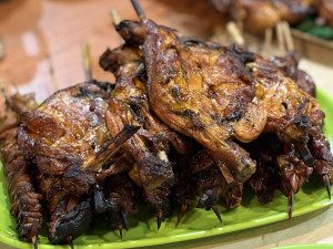 Bacolod City, our home base for the next five days in Negros Occidental. After landing at the small provincial airport at dusk we headed out to try Bacolod’s own culinary staple: chicken inasal at Aida’s Chicken. This local delicacy is renowned for its unique marinade, which features calamansi, vinegar, garlic, ginger, and lemongrass. The grilling technique, combined with a sauce made from annatto seeds, gives the chicken its signature amber hue. Served with garlic rice and a dipping sauce made from the drippings, this meal was a comforting welcome for us weary travelers.